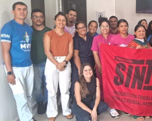 Na manhã da última quinta-feira (15), a direção do Sintsef-CE reuniu-se com empregados e empregadas da Agência Brasileira de Apoio à Gestão do Sistema Único de Saúde (AgSUS), no Polo Base de Saúde Indígena Anacé, localizado no município de Caucaia.
