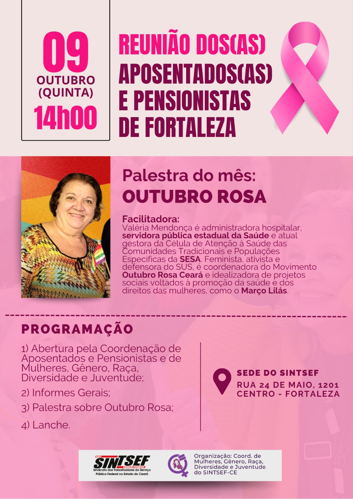 Sintsef-CE participa de evento em alusão ao Outubro Rosa na sede do MGI em Fortaleza