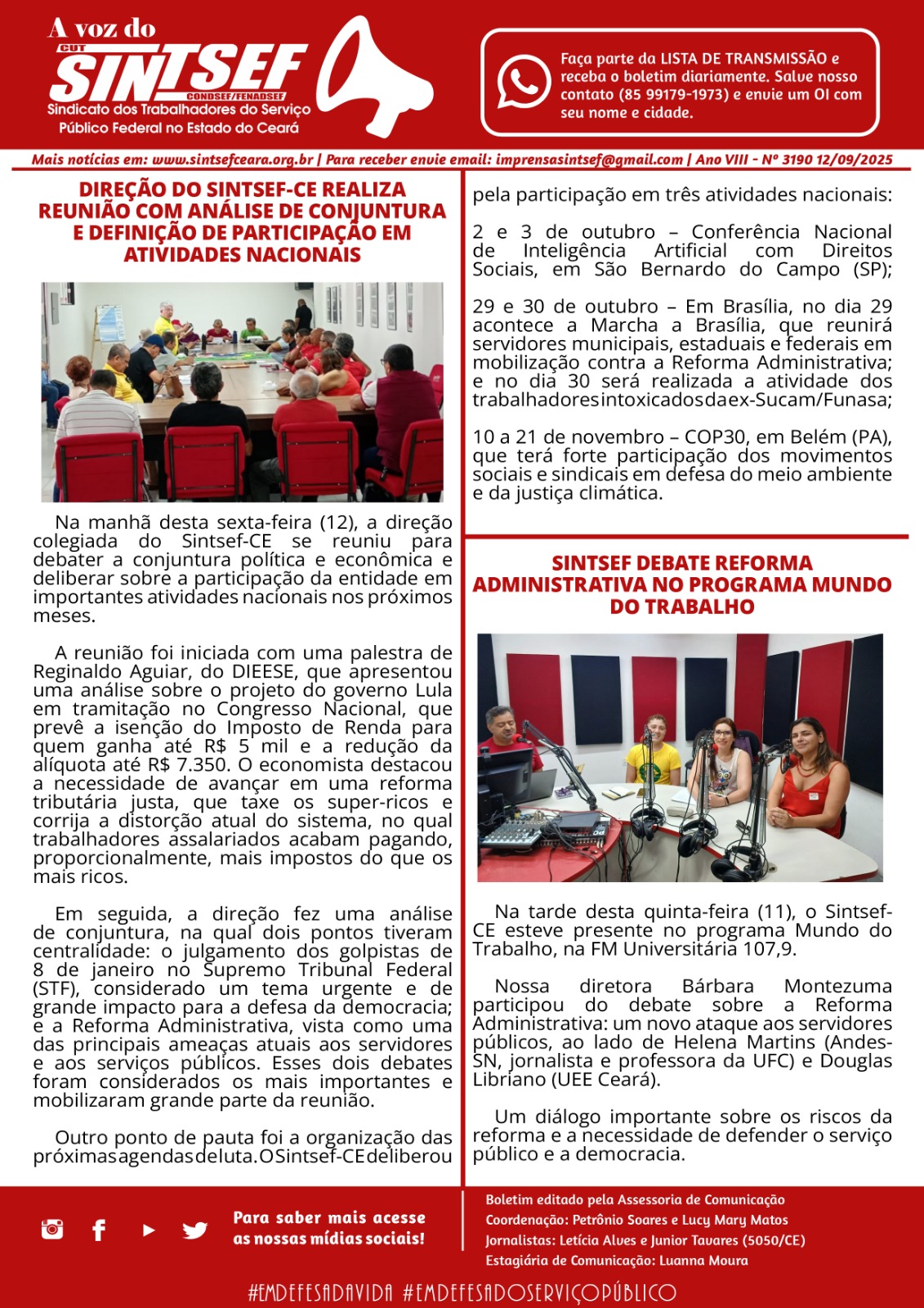 O VOZ do SINTSEF é um boletim diário compartilhado com a base através de lista de email e facebook. Se você quer receber cadastre-se na nossa página aqui.