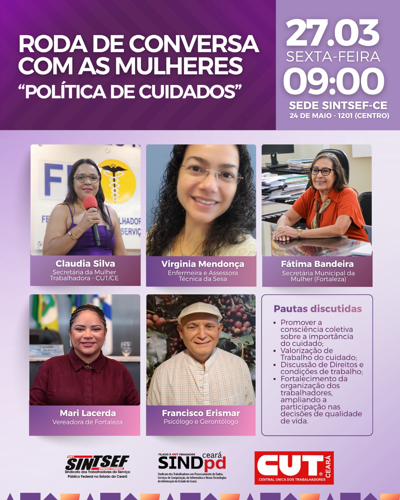 Sintsef-CE realiza roda de conversa sobre política de cuidados e direitos